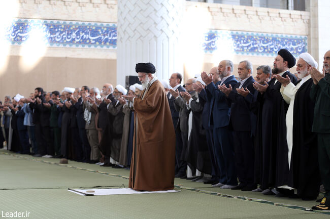 نماز عید سعید فطر صبح امروز با شکوهی بهیاد ماندنی وبا حضور فشرده ملت مؤمن وعزتمند در سراسر میهن عزیز اقامه شد. در پایتخت نیز انبوه بیشمار مردم، با دلهایی سرشار از امید به فضل و یاری پروردگار، نماز عید را به امامت حضرت آیتالله خامنهای رهبر معظم انقلاب اسلامی در مصلای تهران وخیابان های اطراف اقامه کردند.