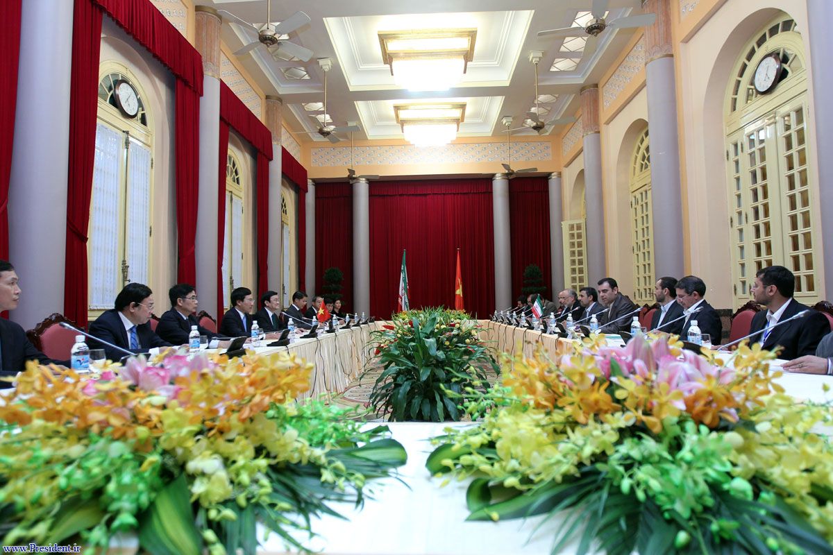 رييس جمهور ويتنام با بيان اينكه جمهوري اسلامي ايران همواره دوستي، ديرينه براي دولت و ملت ويتنام بوده است بر لزوم همكاريهاي متقابل و تقويت روابط ديپلماتيك، اقتصادي و تجاري ميان دو كشور اشاره و تاكيد كرد.
