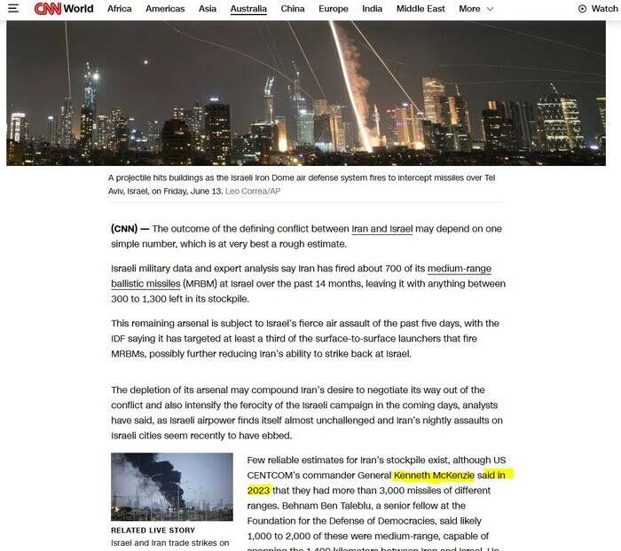 نتیجه این جستجو نشان میدهد: در یک ماه گذشته هیچ مصاحبه یا حتی نقل قولی به نقل از ژنرال مکنزی در مطالب سی ان ان نیامده و آخرین مورد طرح نام او، نقل قولی از این ژنرال سابق آمریکایی در سابقه یک گزارش به تاریخ ۱۷ ژوئن ۲۰۲۵، (۲۷ خرداد ۱۴۰۴) است که در آن از مصاحبه این ژنرال در سال 2023 نقل شده است و مکنزی در آن، تنها به شمار احتمالی موشکهای ایرانی اشاره کرده و اثری از مصاحبه جدید در سی ان ان یافت نمیشود.