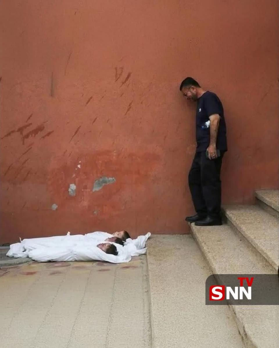 عکس/ پدر فلسطینی خیره به پیکر فرزندانش