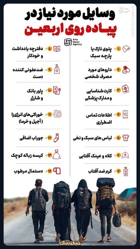 اینفوگرافیک/ وسایل مورد نیاز در پیادهروی اربعین