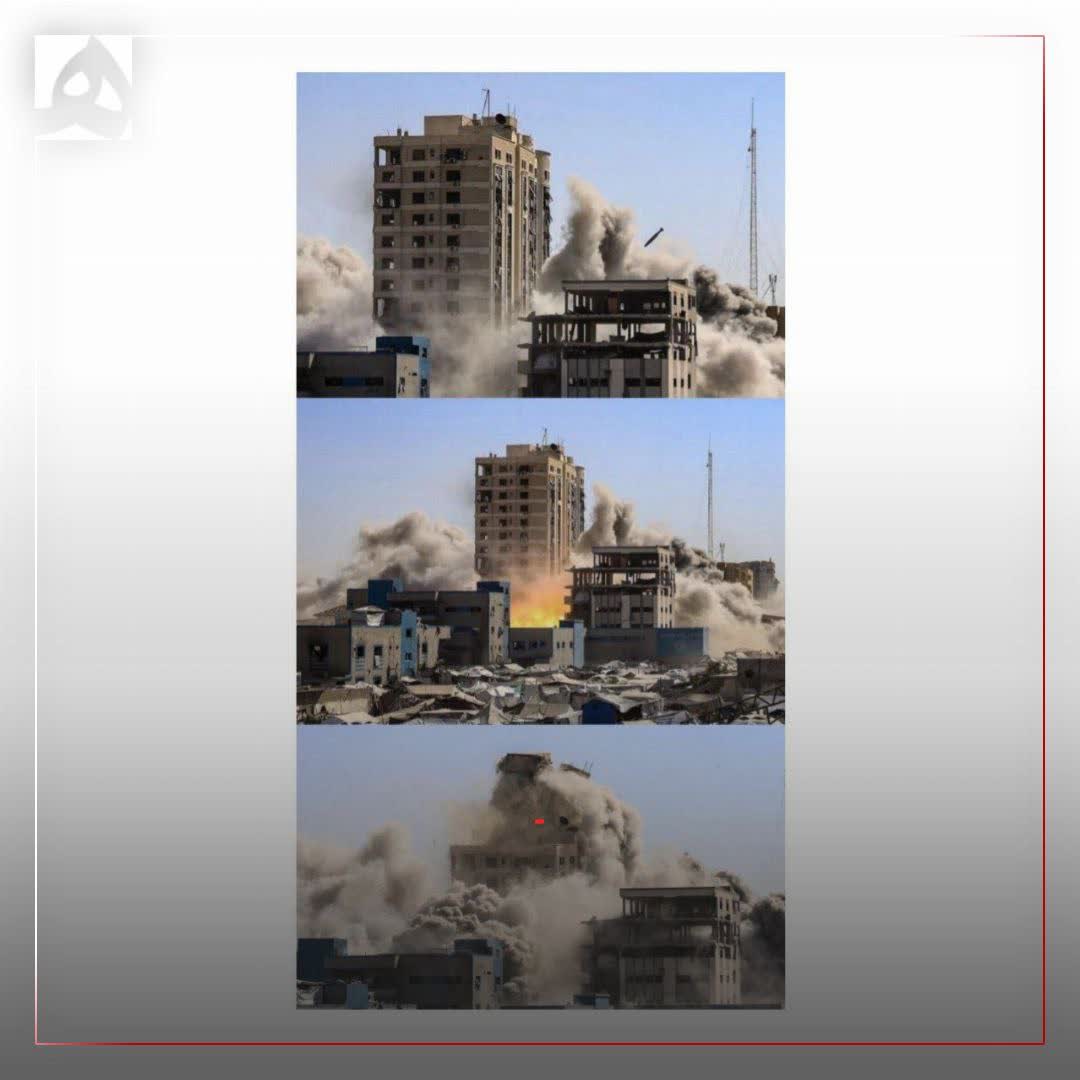 لحظه برخورد بمب اسرائیلی به یک ساختمان