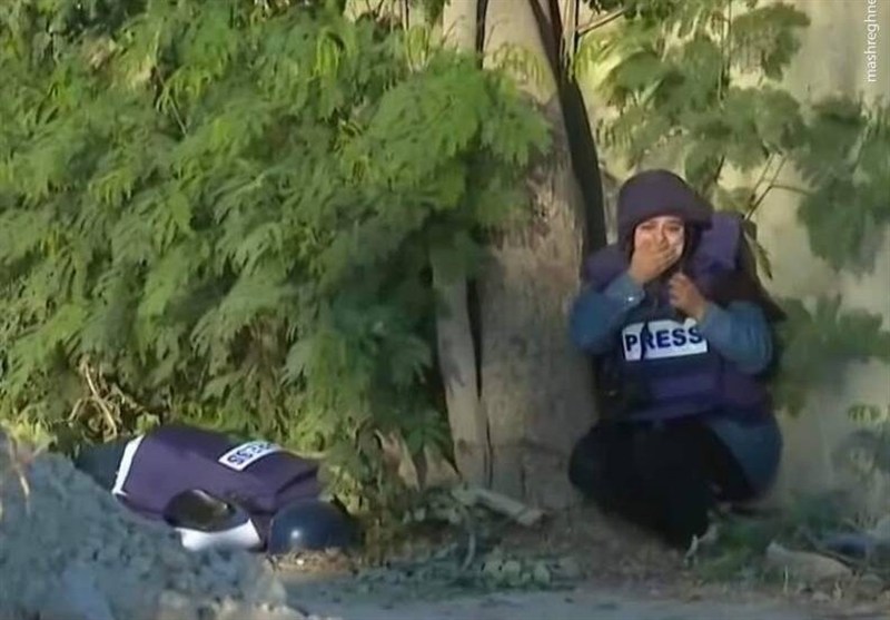 معلوم بود که اتفاقی افتاده، همان سمتی که دیواری پناه شیرین ابوعاقله و همکارش؛ شذا حنایشه بود؛ یکی ایستاده و همچنان پناه گرفته، و دیگری نقش بر زمین.