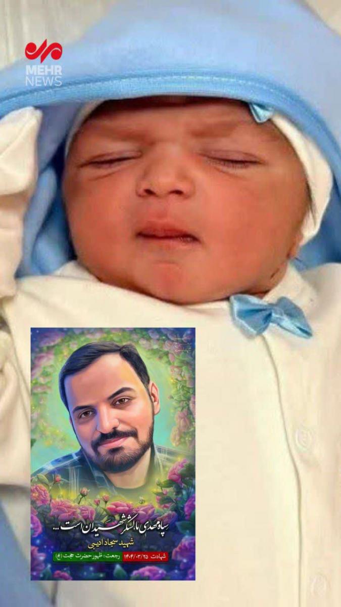 فرزند شهید حمیدرضا(سجاد ادیبی) دیده به جهان گشود/ شهید حمیدرضا ادیبی در جنگ تحمیلی ۱۲ روزه اخیر رژیم صهیونسیتی علیه کشورمان به شهادت رسیده بود.