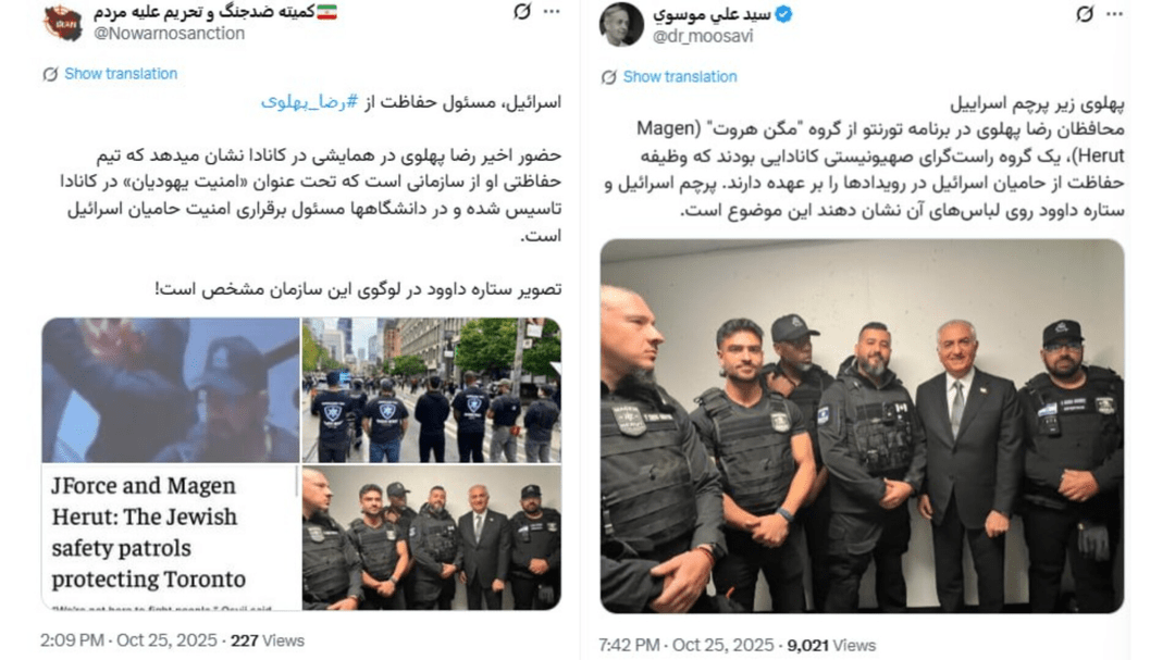 به گزارش فارس، اخیراً، تصاویری در شبکههای اجتماعی منتشر شده که نشان میدهد یک تیم حفاظتی وابسته به اسرائیل، مسئولیت امنیت رضا پهلوی در کانادا را به عهده گرفته است و این موضوع واکنشهای متعددی در شبکههای اجتماعی به همراه داشته است.