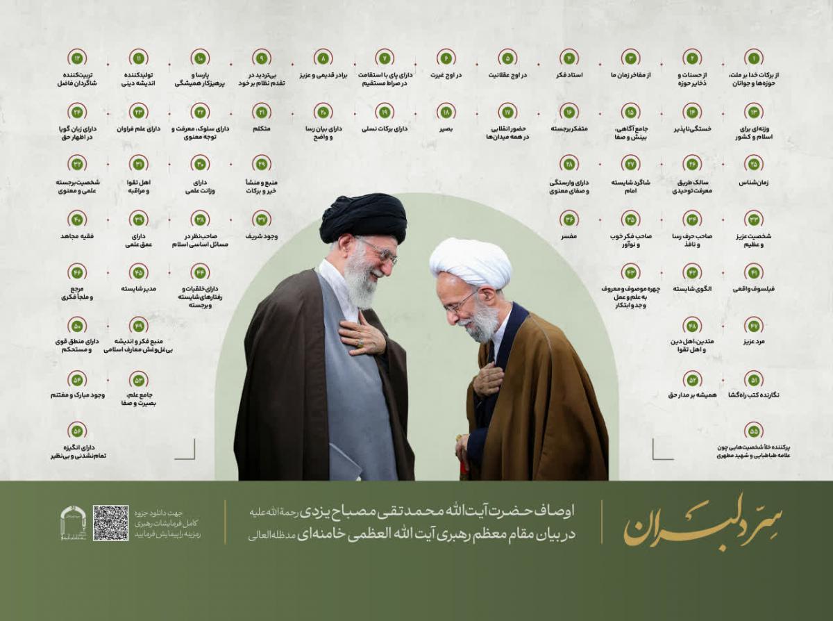 عکس / بیش از پنجاه ویژگی علامه مصباح یزدی در کلام مقام معظم رهبری