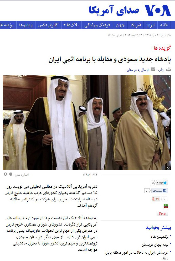 آتلانتیک: اگر اوباما می خواهد در مقابله با ایران موفق شود، لازم است که با آل سعود و دیگر خاندان حاکم در کشورهای حوزه خلیج فارس همکاری کند تا مطمئن شود آن کشورها شرکای موثر دیپلماتیک هستند و نه نقاط ضعف آمریکا.