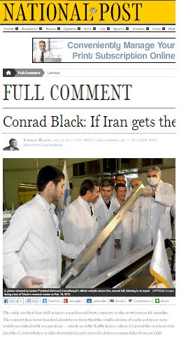 نشنال پست (nationalpost) نوشت: «مسئله این است که ممکن است ایران ظرف مدت یک سال یا هجده ماه آینده توانایی هستهای نظامی پیدا کند. چنین اقدامی به معنای "برونرفت از پیمان انپیتی" است، مانند زمانی که کره شمالی به باشگاه هستهای پیوست. آمریکا نیز بالطبع در حال توزیع دفاع ضدموشکی در اطراف خلیج فارس است.