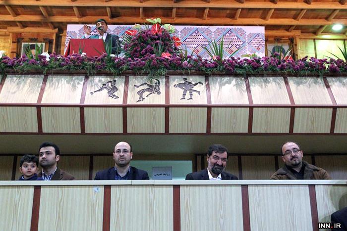 همچنین در داخل سالن مراسم بنرهایی با مضامین "دست در دست هم دهیم به مهر محسن رضایی" ، "این روزها همه به محسن رضایی فکر می کنند، شما چطور؟" و "از مردم، با مردم، برای مردم" به چشم می خورد.