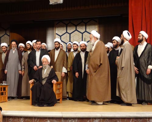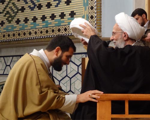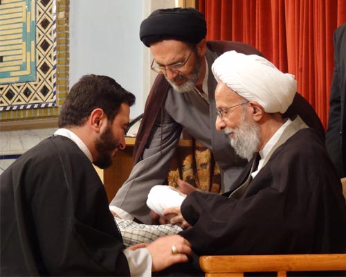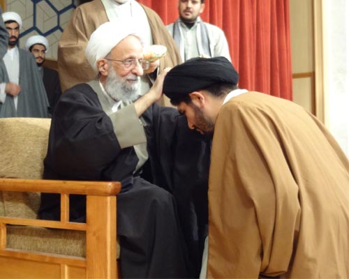 مراسم عمامه گذاري طلاب به دست علامه مصباح يزدي