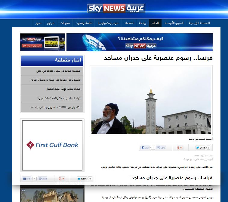لازم به ذکر است که بر اساس آمار "دیده بان کنترل اقدامات ضد اسلامی" فرانسه، در سال 2012 میلادی نزدیک 200 اقدام خصومت آمیز علیه مسلمانان در این کشور به ثبت رسیده که این مسئله نشان دهنده افزایش 28 درصدی این گونه اقدامات تحریک آمیز نسبت به سال 2011 میلادی است.