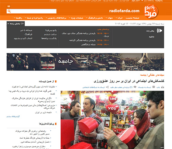 این سایت وابسته به ارگان سازمان سیا پس از تشریح وضعیت خیابانهای اروپا در روز عشق ورزی به سراغ قوانین جمهوری اسلامی امده و می نویسد:
