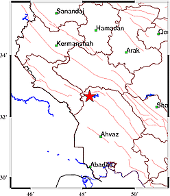 | موقعيت رومركز زلزله: | ۳۲.۶۶ شمالي و ۴۸.۲۷ شرقي |