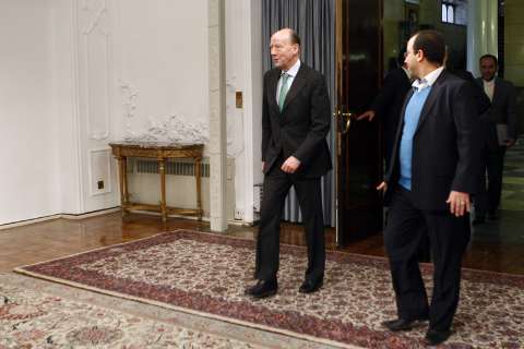 عصر ایران - عکس های منتشر شده توسط خبرگزاری دولت (ایرنا) از ملاقات امروز دوشنبه اسفندیار رحیم مشایی مشاور رئیس جمهور با قائم مقام وزیر خارجه سوئد در تهران نشان می دهد مشایی در این ملاقات رسمی از اتاق مخصوص دیدارهای رئیس جمهور در نهاد ریاست جمهوری استفاده کرده است.
