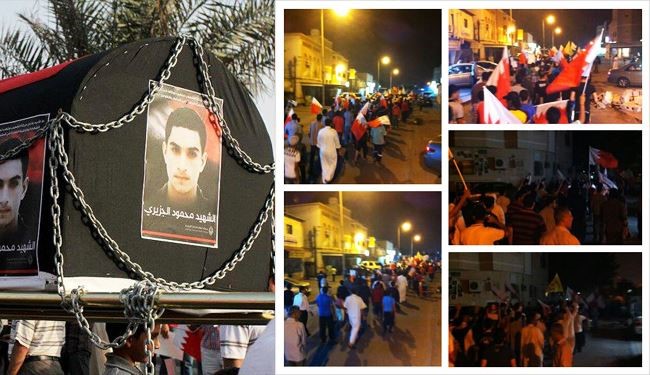 به گزارش روز شنبه پایگاه خبری شبکه العالم، دیشب مناطق مختلف بحرین صحنه تظاهرات و فعالیتهای اعتراض آمیز مردمی بود. مردم بحرین با برگزاری مراسم تشییع نمادین پیکر شهید "محمود الجزیری"، خودداری رژیم آلخلیفه از تحویل پیکر این شهید به خانوادهاش را محکوم کردند.