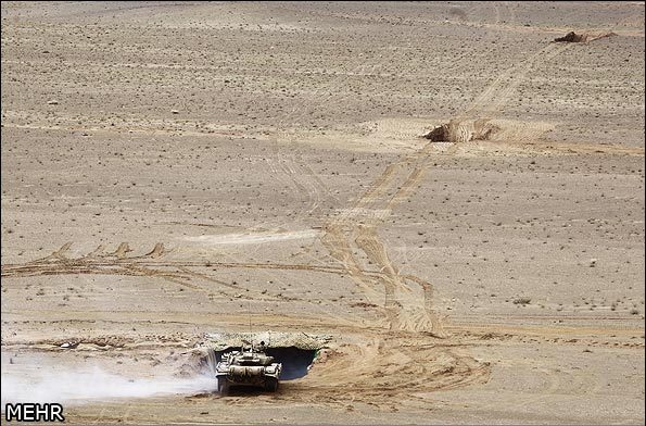 ورود تانک سپاه به تونل زیر زمینی به تورهای استتار در بالای ورودی دقت کنید
