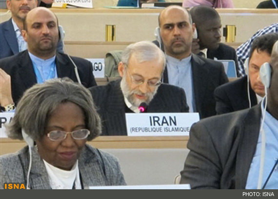 لاریجانی با اشاره به اظهارات کمیسرعالی حقوق بشر در سخنرانی افتتاح بیست و دومین نشست شورا گفت: اینجانب به طور کامل با دیدگاه ایشان در جهانشمول بودن نظارت بر وضعیت حقوق بشر و نفی گزینشی برخورد کردن با کشورها و سوء استفاده از ابزار حقوق بشر سازمان ملل موافقم و بر این باورم که دو رویه گزارش دهی موازی و تکراری در مجمع عمومی و شورای حقوق بشر که مامور ارائه گزارش درباره وضعیت حقوق بشر در کشور اینجانب شده اند برای اثبات بیمار بودن این اقدام کافی است. ناوی پیلای کمیسر عالی حقوق بشر سازمان ملل نیز در سخنرانی خود گفته بود مکانیزم یوپی آر، مکانیزمی منحصر بفرد برای نظارت بر وضعیت حقوق بشر همه کشورها در سراسر جهان است و حقوق بشر نباید ابزاری برای برخورد گزینشی با کشورهای خاص باشد.