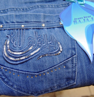 شلوارهای جین چینی وارد بازار ایران شدند که عبارت "بسم الله الرحمن الرحیم” که "الله” آن دوبار تکرار شده است، و روی جیب های عقب این شلوارها یک بسم الله هم برعکس نوشته شده است.