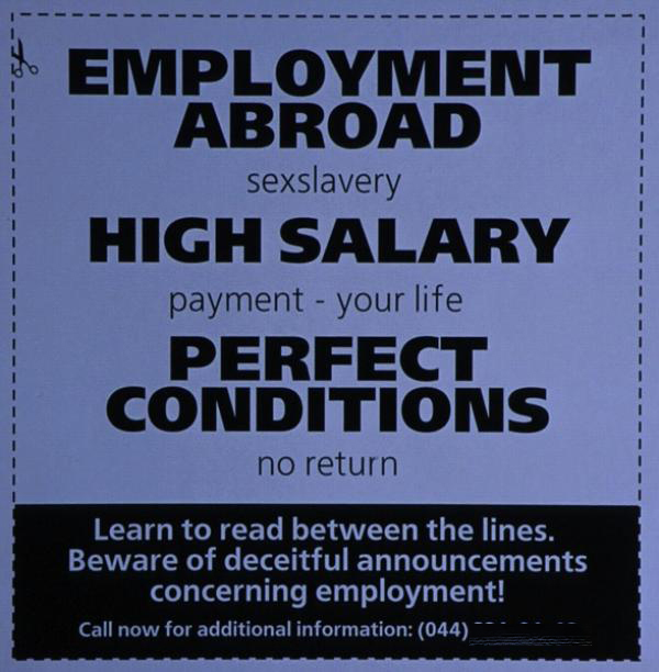 قاچاقچیان از طریق تبلیغات تقلبی برای دست یافتن به شغلهای پر درآمد مثل خدمتکاری یا رقاصگی، قربانیان خود را فریب میدادند. روش دیگر تبلیغ از طریق "آژانسهای ازدواج" است که با قول دروغین ازدواج با افراد پولدار در کشورهای خارجی، دختران و زنان اغفال میشدند. گاهی اوقات دلالان با فرستادن یکی از افراد فریب خورده به محل زندگی این افراد و خوب نشان دادن شرایط، دیگر زنان و دختران را فریب داده و آنها را برای تن فروشی به چنگ میآوردند.