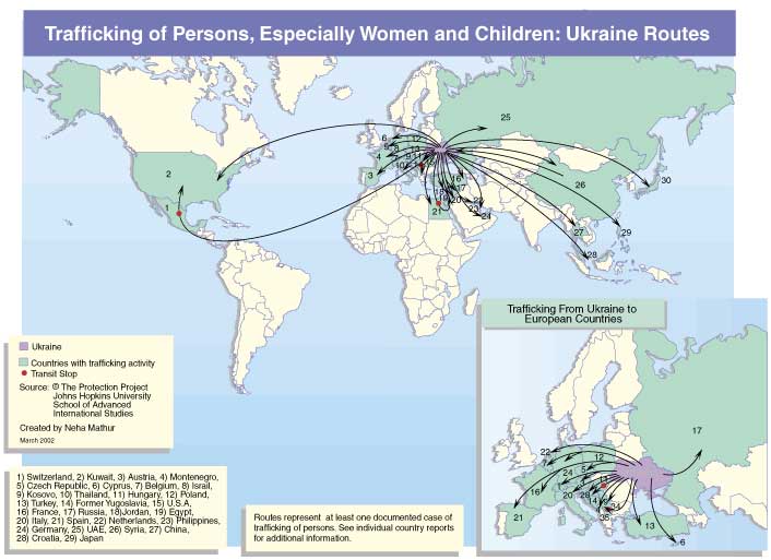 نقشه مسیرهای قاچاق زنان و دختران از اوکراین به دیگر نقاط جهان