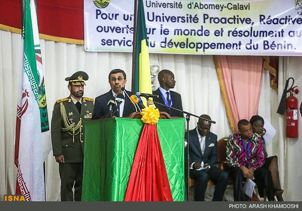 احمدینژاد در بخش دیگری از صحبتهای خود با اشاره به آمادگی ایران جهت گسترش همکاریهای خود با کشور بنین از جمله درزمینه علمی و آموزشی گفت: ما آمادگی داریم که کارهای تحقیقاتی بین دانشگاههای دو کشور انجام شود و یکی از دانشگاههای اصلی ایران با این دانشگاه خواهرخوانده شود.