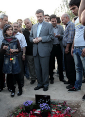 به گزارش خبرنگار مهر، اسفندیار رحیم مشایی به قطعه هنرمندان بهشت زهرا (س) رفت و بر سر مزار هنرمندان حاضر شد. در زمان حضور مشایی بر سر آرامگاه ابدی عسل بدیعی که نوروز امسال دار فانی را وداع گفت خانواده این هنرمند و رضا داود نژاد حضور داشتند.