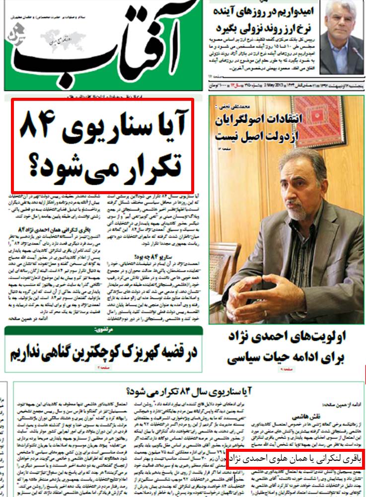 توهین روزنامه آفتاب یزد به لنکرانی + عکس