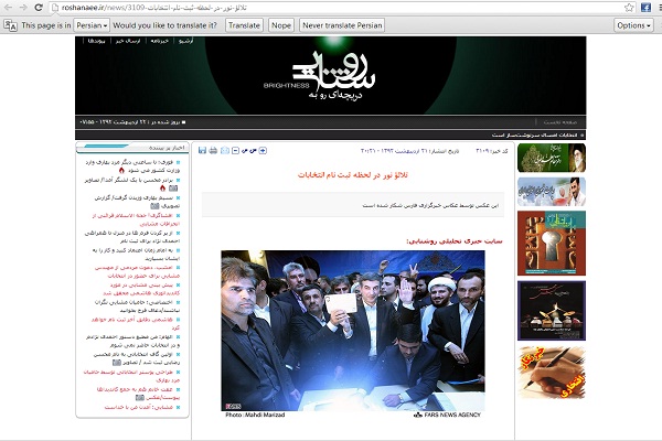 سایت «روشنایی» که متعلق به «حجت الاسلام بهمن شریف زاده» مدیر گروه مطالعات دینی مرکز مطالعات ملی جهانی شدن و از نزدیک ترین افراد به اسفندیار رحیم مشایی است، با انتشار تصویری از ثبت نام اسفندیار رحم مشایی در انتخابات ریاست جمهوری و زاویه خاص نورهای مصنوعی عکاسان و فیلمبرداران حاضر در محل ثبت نام، تیتر «تلالؤ نور در لحظه ثبت نام انتخابات» را برای آن برگزید. اقدامی که یادآور ماجرای «هاله نور» احمدی نزاد در اولین سفر به نیویورک و هنگام سخنرانی در ممع عمومی سازمان ملل متحد در سال 84 بود.