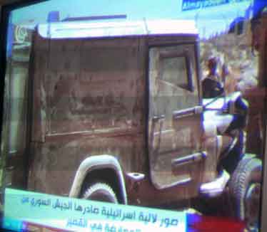 شبکه تلویزیونی المیادین تصاویری از خودروی نظامی ساخت رژیم صهیوینستی در منطقه القصیر را منتشر کرد.