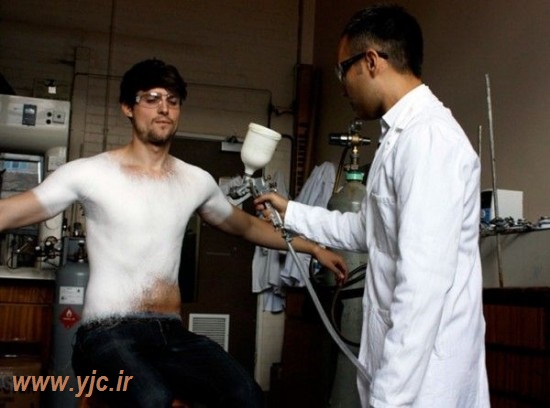او با کمک گرفتن از چند شیمی دان برجسته انگلیسی توانست الیاف خاصی را طراحی کند که می توان درون یک بطری ریخته و آن را به بدن اسپری کرد سپس این مواد به ارامی به هم متصل شده و تبدیل به لباس های معمولی می شوند.