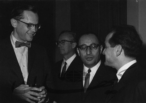 ضیافت دربار پهلوی به افتخار پرفسور «ریچارد فرای» (نفر اول از چپ) با حضور هدایتی (وزیر آموزش و پرورش/ نفر اول از راست) و «شجاعالدین شفا» (ایدئولوگِ یهودی حکومت شاه/ نفر دوم). این ضیافت شب 20 دی 1344 و پس از آغاز مبازرات امام خمینی(ره) با حضور مقامات عالی رژیم برگزار شد.