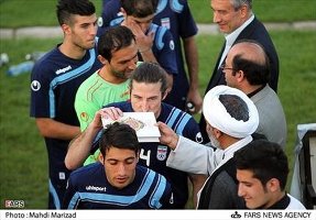 یک روحانی هم در تمرین تیم ملی حضور یافته بود و با قرائت آیتالکرسی برای تیم ملی آرزوی موفقیت کرد.