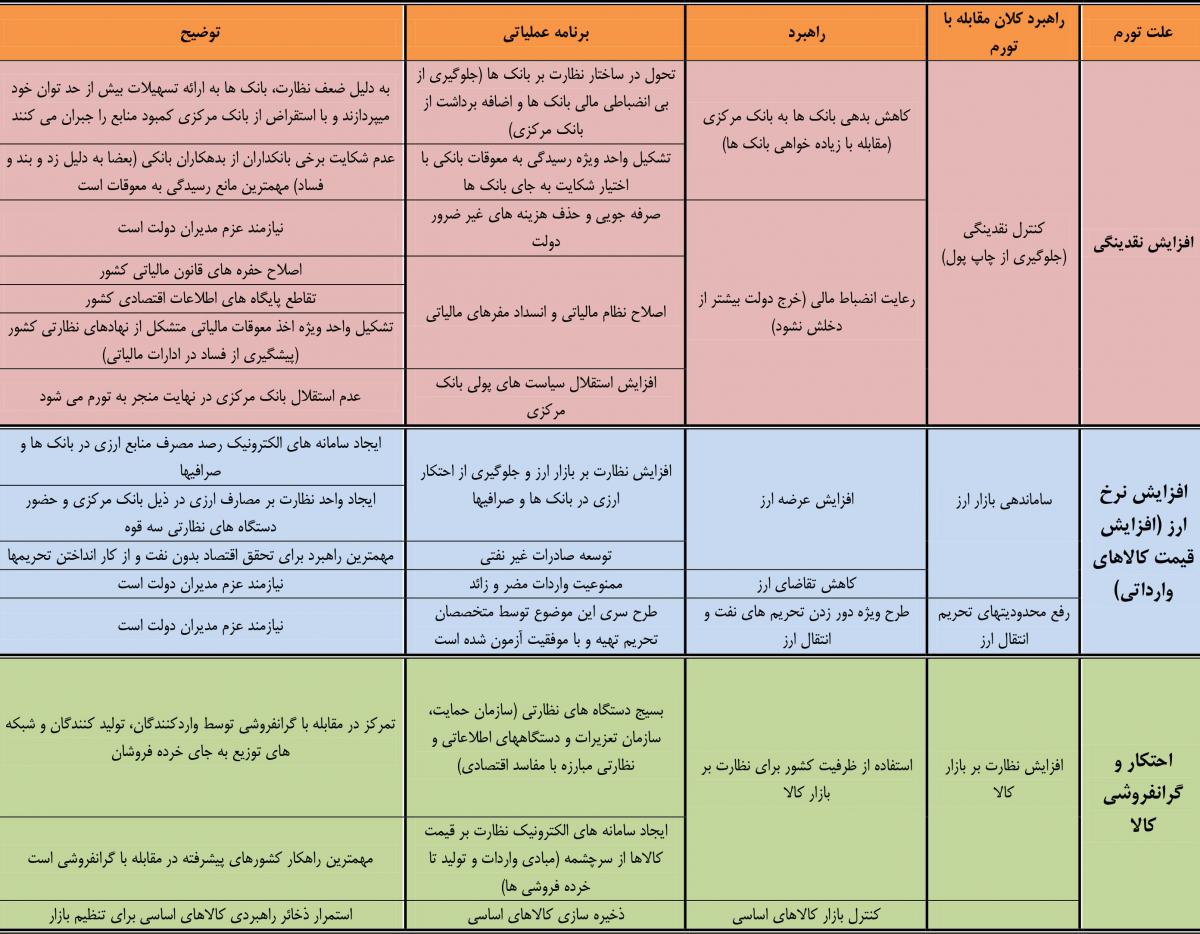در ادامه جدول برنامه عملياتي بررسي و ريشه كن كردن تورم در كشور در اين گزارش آماده است را ميبينيد:
