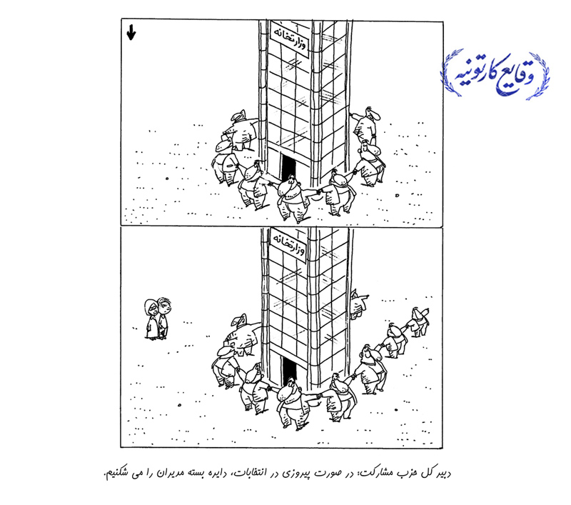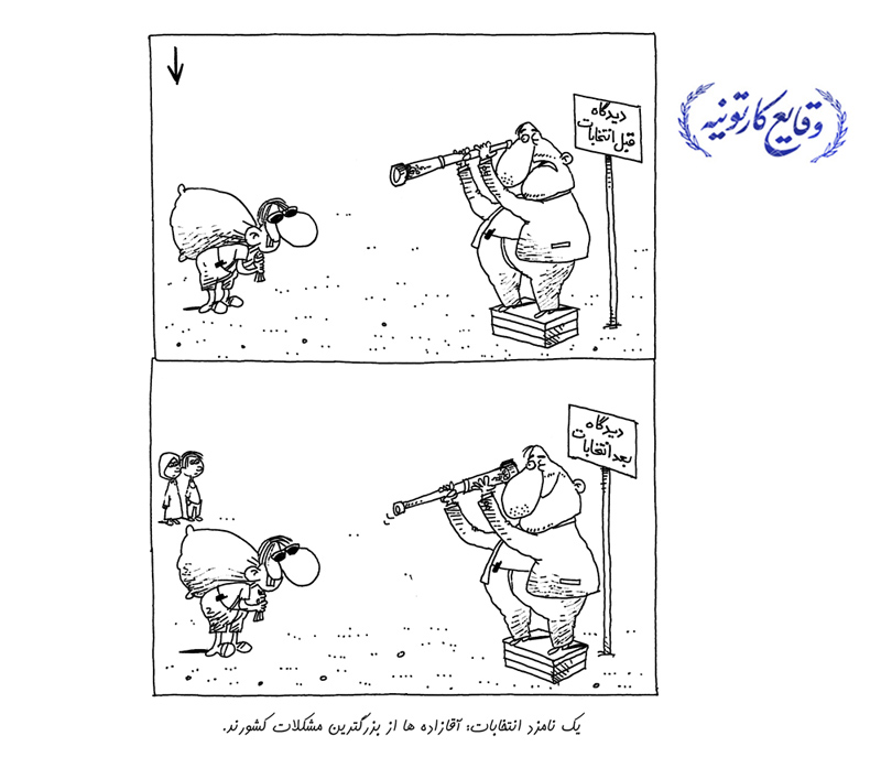 سایت روزکارتون: این کاریکاتورها در روزنامه کیهان سال ۸۴ به چاپ رسیده است و هرگونه شباهتی بین شعارهای نامزدهای آن سال با نامزدهای انتخابات فعلی کاملاً تصادفی میباشد(!)