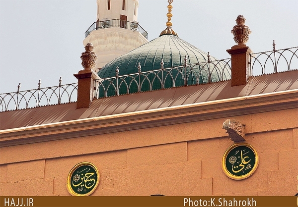 نام مبارک «سید جوانان اهل بهشت» بر دیوار مسجدالنبی(ص)+عکس