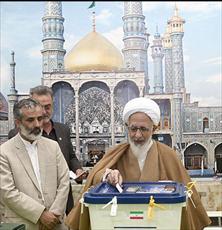 به گزارش خبرنگار خبرگزاری رسا، حضرت آیت الله عبدالله جوادی از مراجع تقلید، لحظاتی پیش در حرم کریمه اهل بیت(ع) رای خود را به صندوق سیار شماره 472 انداخت.