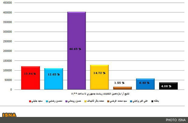 نتایج اولیه شمارش آرا اعلام شد: صدرنشینی حسن روحانی + نمودار