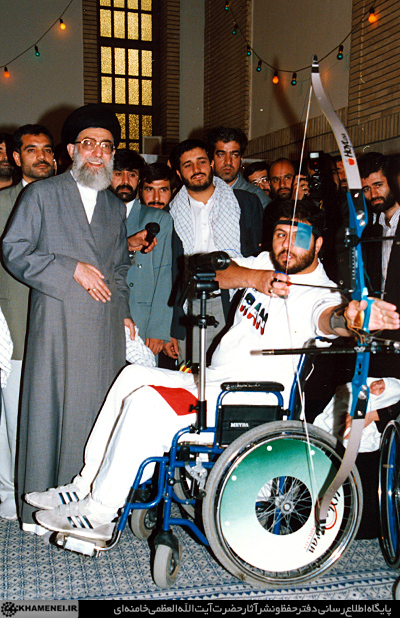 ه نظرم اكثر قریب به اتفاق سخنان آقا دربارهی ورزش در دیدار با ورزشكاران جانباز بوده است. یك بار هم باستانیكارهای جانباز در حسینیهی امام خمینی خدمت آقا رسیدند و همانجا به اجرای برنامه پرداختند. در آن دیدار آقا راجع به ورزش باستانی صحبت كردند. بعد هم گفتند كه هیچ موقع جلوی من سنگ نزنید، ناراحت میشوم. دلیلش این است كه وقتی قطعنخاعیها ورزش سنگ زورخانه میكنند، به علت سنگینی سنگها، پاهایشان شروع به لرزیدن میكند.