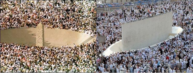 در سالهای اخیر و طی تصمیم آل سعود به بازسازی مکه، علاوه بر تخریبهایی که در بافت تاریخی کعبه روی داد و نیز ساخت و سازهای مشکوکی که پیرامون اطراف مسجدالحرام انجام گرفتند، ستون شیطان نیز با یک دیوار جایگزین گردید. طراحی دیوار مراسم رمی جمرات بر عهده نورمن فاستر و همکارانش بود