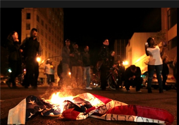 مردم آمریکا پرچم کشورشان را به آتش کشیدند/ دادگستری وعده بازنگری در پرونده را داد