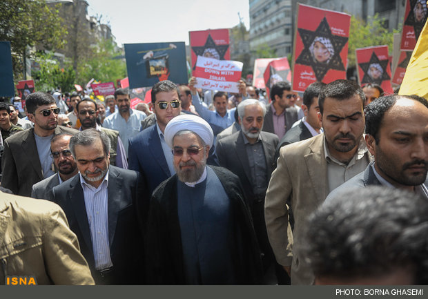 به گزارش خبرنگار سیاسی خبرگزاری دانشجویان ایران(ایسنا)، حجتالاسلام والمسلمین حسن روحانی در حاشیه راهپیمایی روز قدس در تهران، در جمع خبرنگاران بر ضرورت وحدت دنیای اسلام برای مقابله با رژیم صهیونیستی تاکید کرد و گفت: رژیم صهیونیستی زخمی است که سالها بر بدن دنیای اسلام نشسته است و این زخم باید از بین برود.