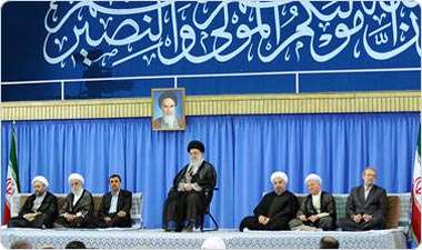 رهبر انقلاب اسلامی با درخواست از همه جریانهای گوناگون سیاسی و شخصیتها و عناصر متنفذ برای کمک به آقای روحانی و دولت وی تأکید کردند: امیدواریم رئیس جمهور وظایف سنگین خود را به خوبی انجام دهد و توقعات مردم را به بهترین وجه برآورده سازد.