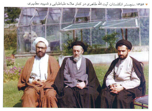 در همین ایام هم مرحوم علامه طباطبائی برای معالجه به منچستر تشریف آورده بودند و مرحوم آقای مطهری هم ایشان را همراهی میکردند. علت همراهی مرحوم مطهری با مرحوم علامه این بود که چون سخنان و پاسخهای مرحوم علامه، مجمل و در مواردی هم غامض بود، مرحوم آقای مطهری تلاش میکردند که این مطالب برای مخاطبین قابل فهم تر کنند و در واقع مطالب مرحوم علامه را شرح و بسط میدادند.