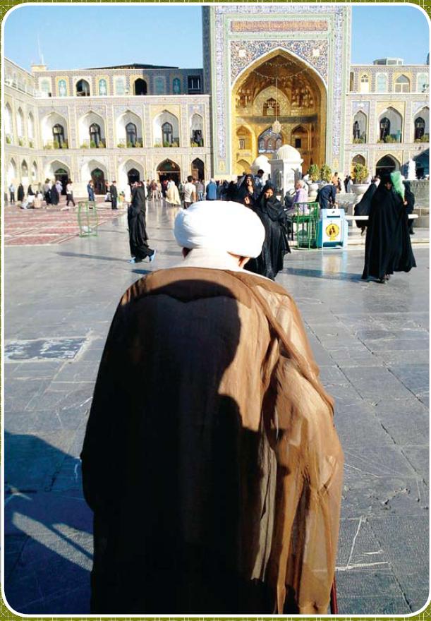و حاج آقا شیخ لطف ا... پیرفرزانهای با قدی خمیده و ذکری بر لب در آستانه تشرف به روضه منوره حرم رضوی قرار گرفته است.