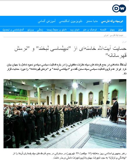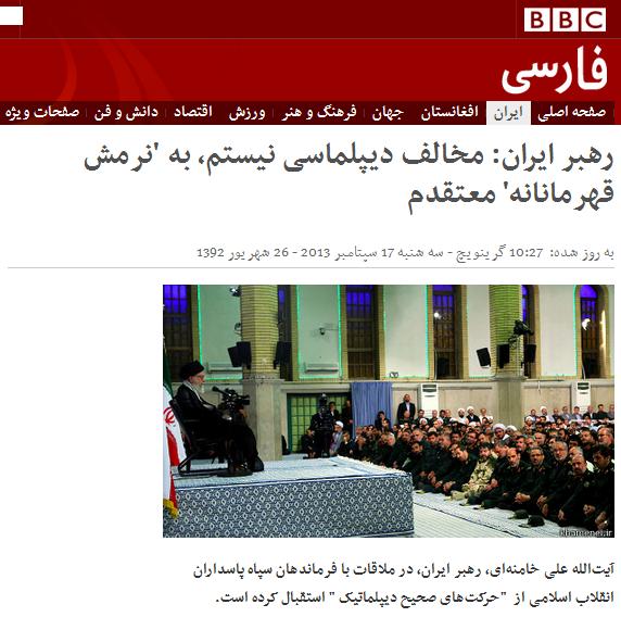 وب سایت انگلیسی بی بی سی فارسی (bbcpersian) نوشت: «آیتالله علی خامنهای، رهبر ایران، در ملاقات با فرماندهان سپاه پاسداران انقلاب اسلامی از "حرکتهای صحیح دیپلماتیک" استقبال کرده است.