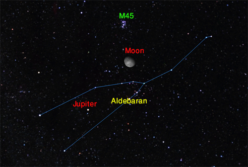 مهندس مسعود عتيقي ادامه داد: در روز چهارشنبه سوم مهر، ساعاتي قبل از طلوع خورشيد ستاره دبران مشهور به چشم گاو همنشين ماه در صورت فلكي گاو بود.