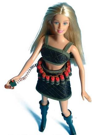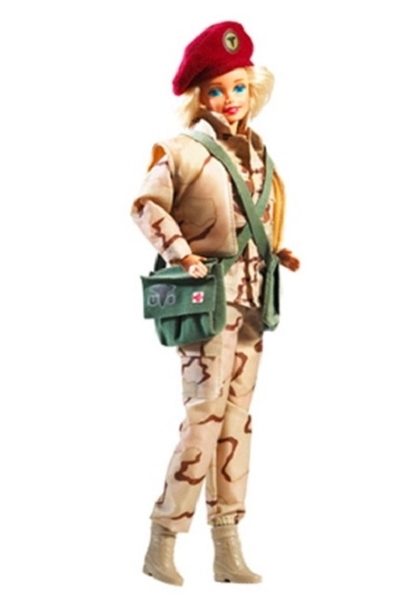به عنوان مثال در طول جنگ عراق و آمریکا در سال 1990 باربی وظیفه کنترل افکار عمومی جوانان را با مقاصد جنگ طلبانه برعهده داشت به طوری که عروسک باربی با پوشش نظامی آمریکایی وارد بازار شد.
