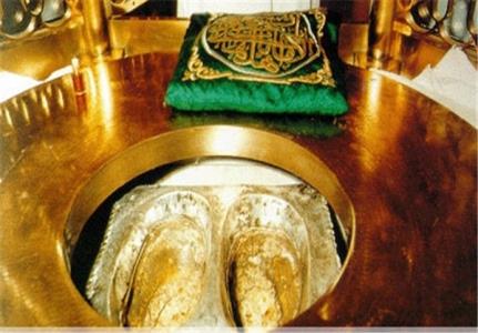این سنگ بر پایهای از سنگ مرمر با قطر 36 سانتیمتر قرار گرفته و با اتصالاتی از طلا بدان مهار گردیده است. مقام در داخل مقصورهای از شیشه، از نوع کریستال قرارگرفته و بالای آن قبهای کوچک است و هلالی بر فراز آن نصب گردیده است. ارتفاع این بنا از کف زمین به سه متر بالغ میشود.