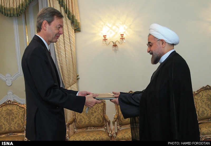 میکائیل بارون فون اونگرن، سفیر جدید آلمان در تهران صبح امروز (دوشنبه) با حجت الاسلام والمسلمین دکتر حسن روحانی رییس جمهوری اسلامی ایران دیدار و استوار نامه خود را تقدیم وی کرد.