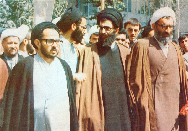 هاشمی نژاد درکنار آیت الله خامنه ای وآیت الله واعظ طبسی دریکی ازراهپیمائی های انقلاب درمشهد